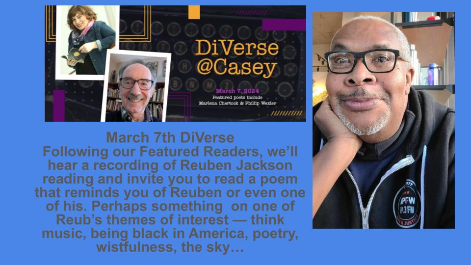 Let’s not stick to our poem plan of reading only originals in the Open next week, unless you’d like to. I welcome us to focus selections and energies on remembering and celebrating our much-loved, much-missed Poet friend, Reuben Jackson, whose words live on.